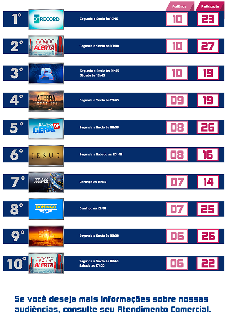 Fique Por Dentro das 10 Maiores Audiências da RECORD TV no Distrito Federal! - Comercial RecordTV